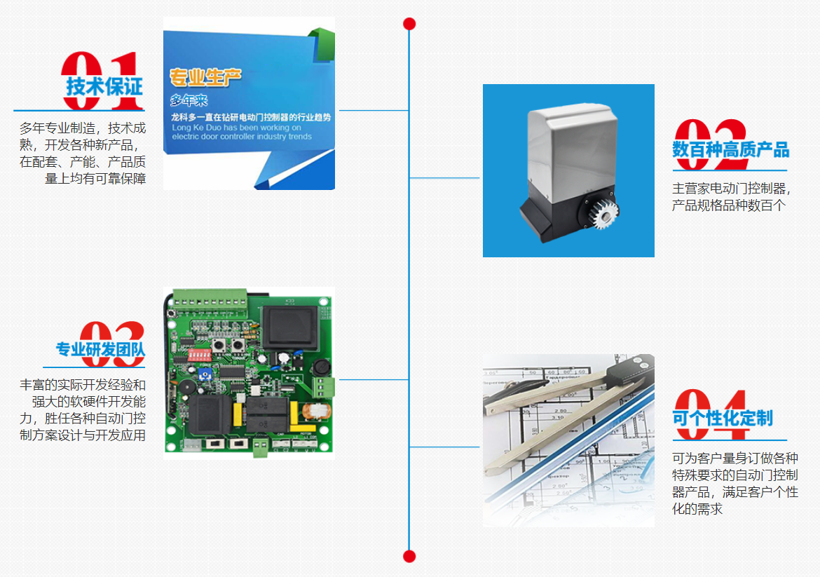 ? ?本公司技術(shù)力量宏厚,產(chǎn)品質(zhì)量穩(wěn)定可靠,是你的可靠的合作伙伴! 質(zhì)量是我們的承諾,誠(chéng)信是我們的宗旨!龍人科技,多人一點(diǎn)!歷經(jīng)二十余年艱苦創(chuàng)業(yè),奮力拼搏,龍科多茁壯成長(zhǎng),為電動(dòng)門(mén)控制器行業(yè)發(fā)展貢獻(xiàn)力量。